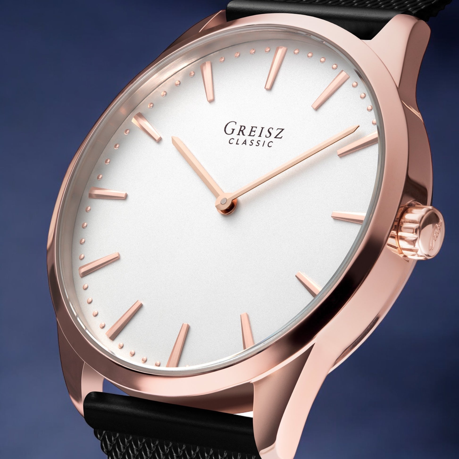GREISZ 1908 r1 [roséguld+vit] 40mm Black Mesh