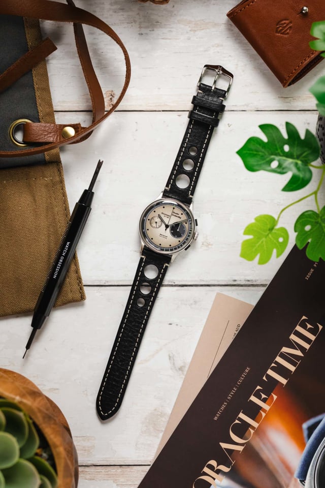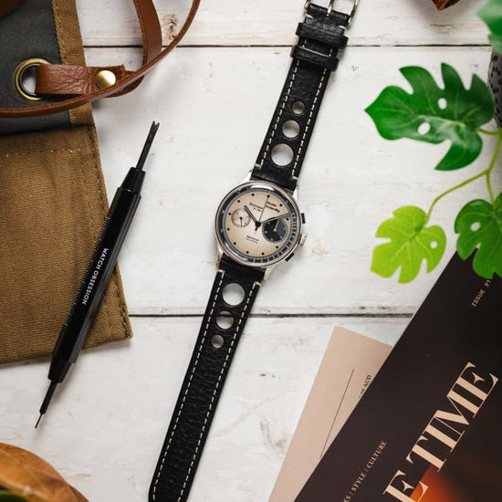 Det sportiga klockarmbandet Rally från österrikiska HIRSCH är inspirerad av racinghandskar. De karaktäristiska hålen har handlackerade kanter i tre lager. Bandet byter du när du vill, utan verktyg!