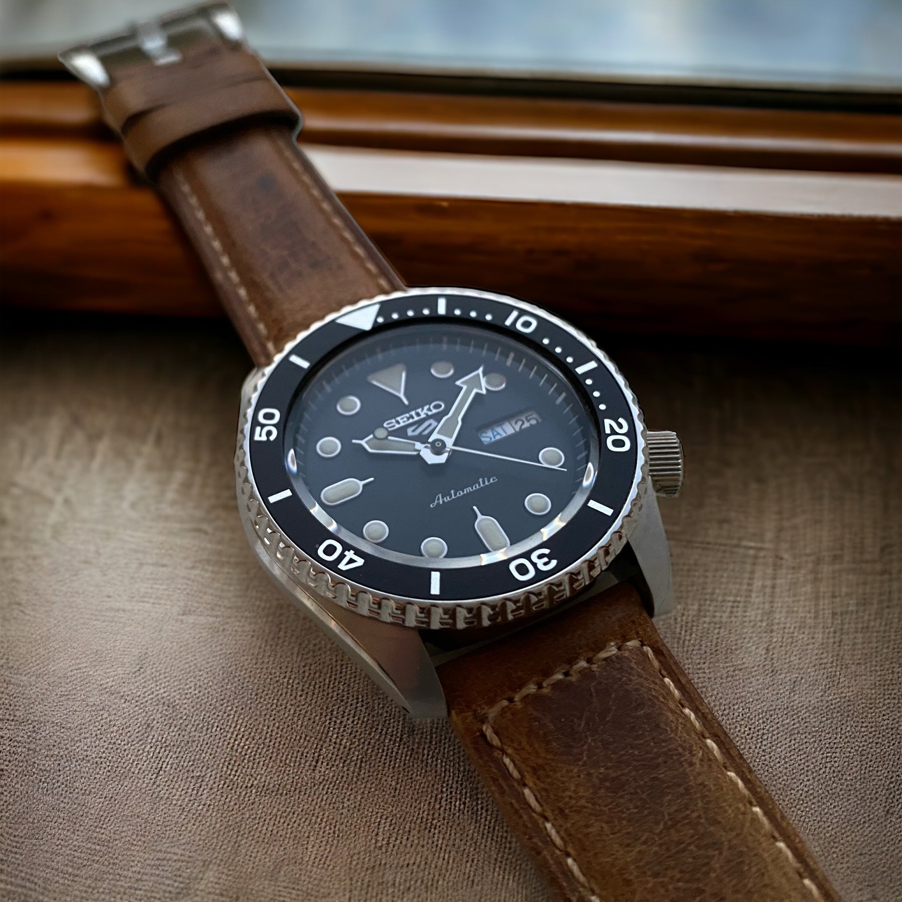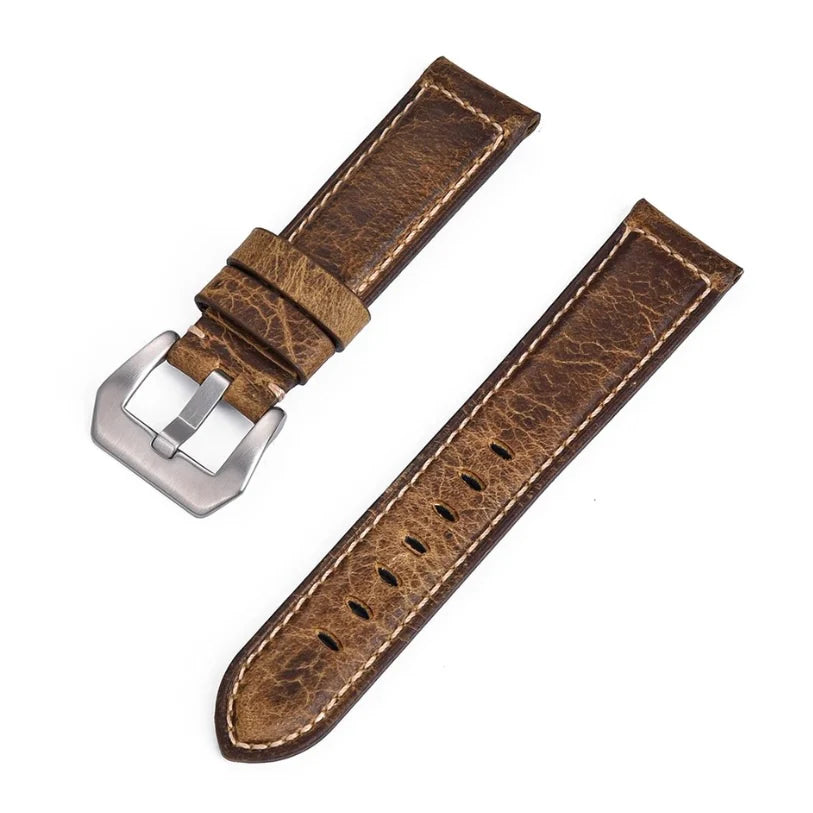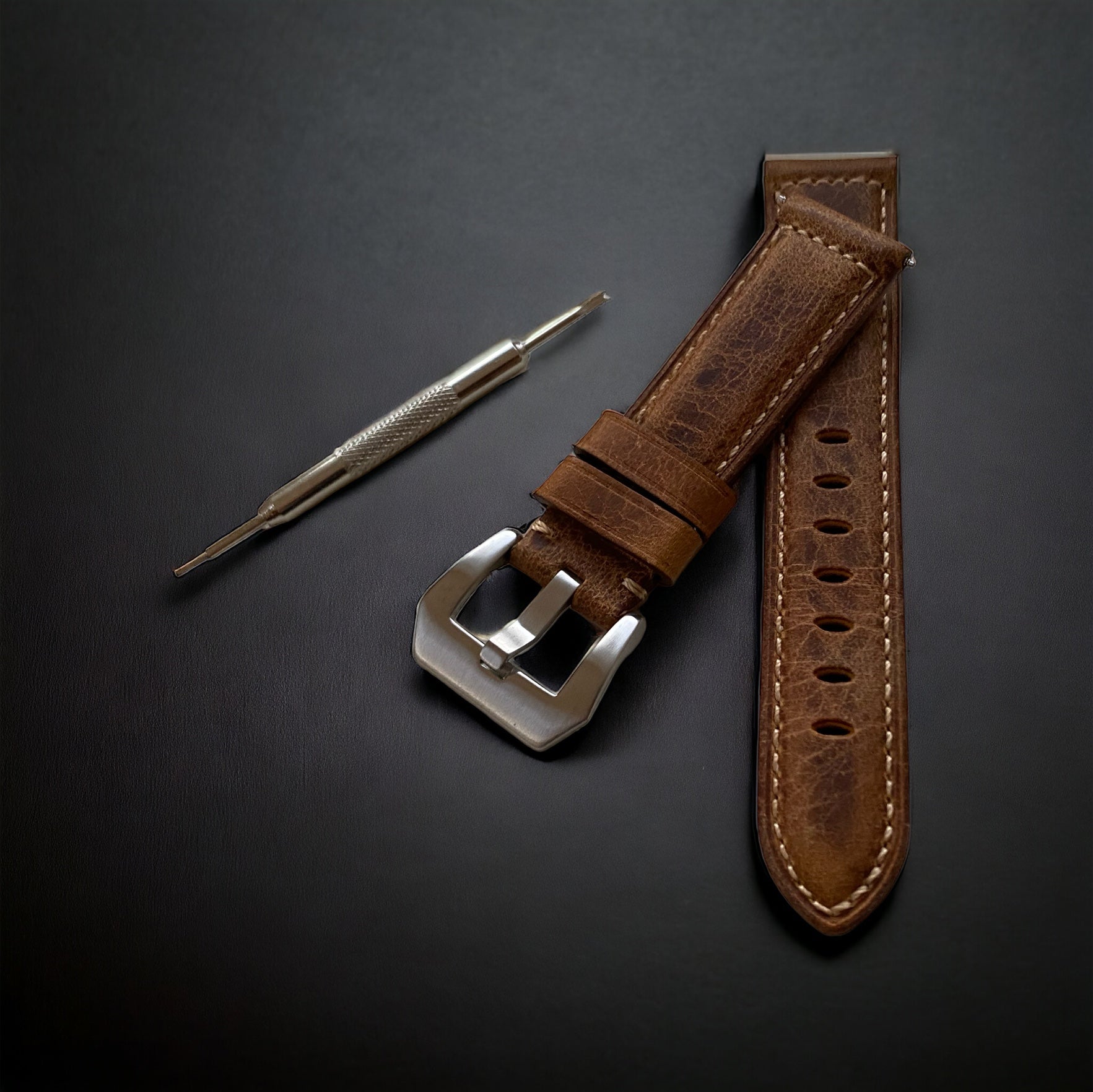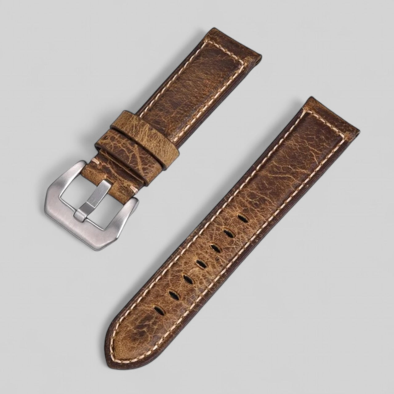 Elegant klockarmband i ljusbrunt läder. Banden finns i 20mm, 22mm och 24mm bredd.