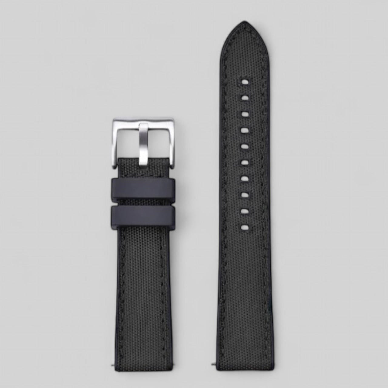 Unna dig det perfekta tillbehöret till din klocka med klockarmbandet Hybrid! Det är tillverkat med en stilren överdel i canvas och en mjuk FKM-gummiundersida som ger en bekväm och säker passform på handleden. Detta klockarmband är det ultimata valet för alla som söker en perfekt kombination av komfort och stil. Passar perfekt för alla tillfällen och klädstilar - från sportiga aktiviteter till vardagligt bruk eller festliga tillställningar. Hålen är förstärkta av FKM. Banden finns i 20mm och 22mm bredd. Spännet är i rostfritt stål. Bandet har snabbkoppling för enklare montering. Beställ ditt klockarmband idag och upplev den ultimata kombinationen av form och funktion!